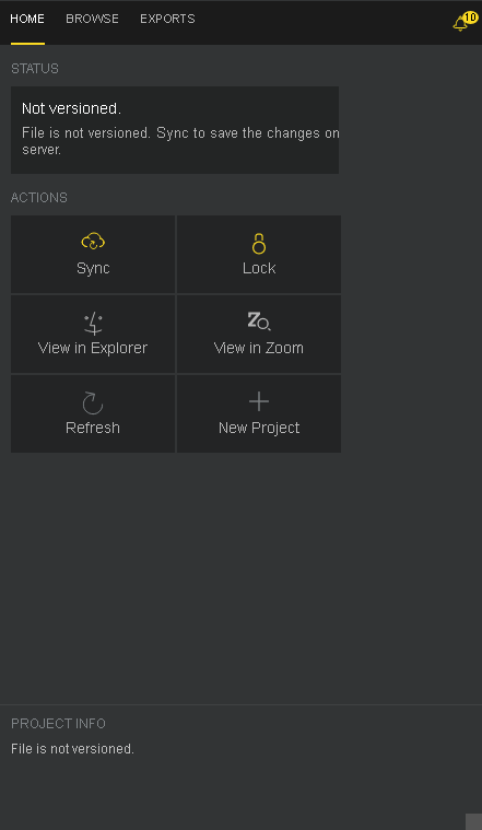 Once the Home tab shows that the project status is unversioned or modified, you can click Sync to begin.